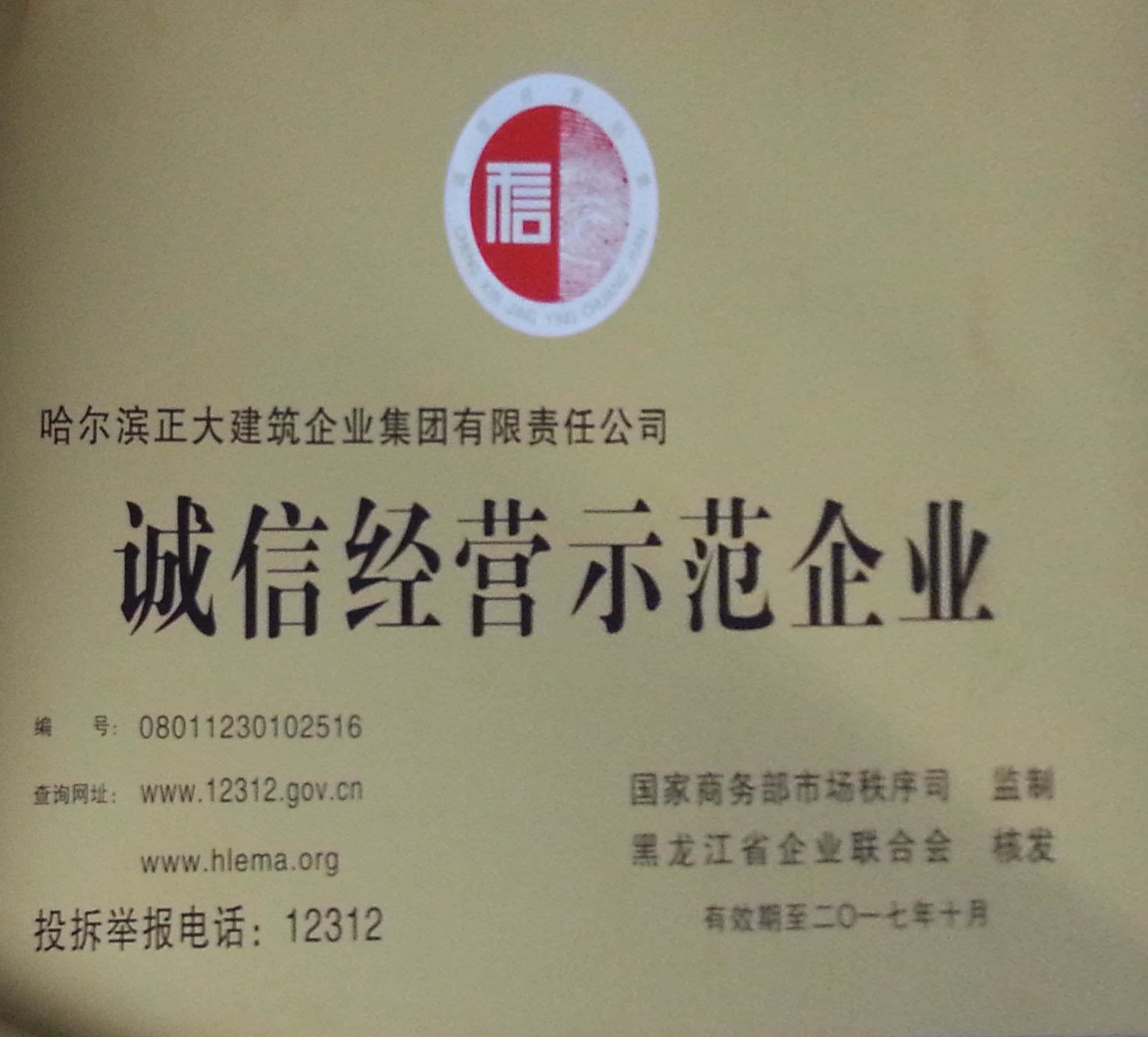 • 黑龍江省誠信示范企業(yè)